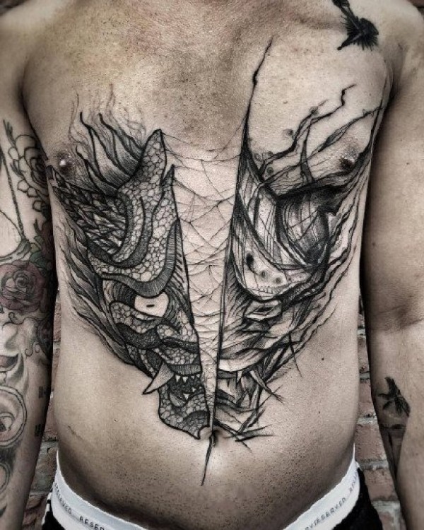 能面万媚纹身手稿_52张日式能剧面具纹身手稿图案素材欣赏