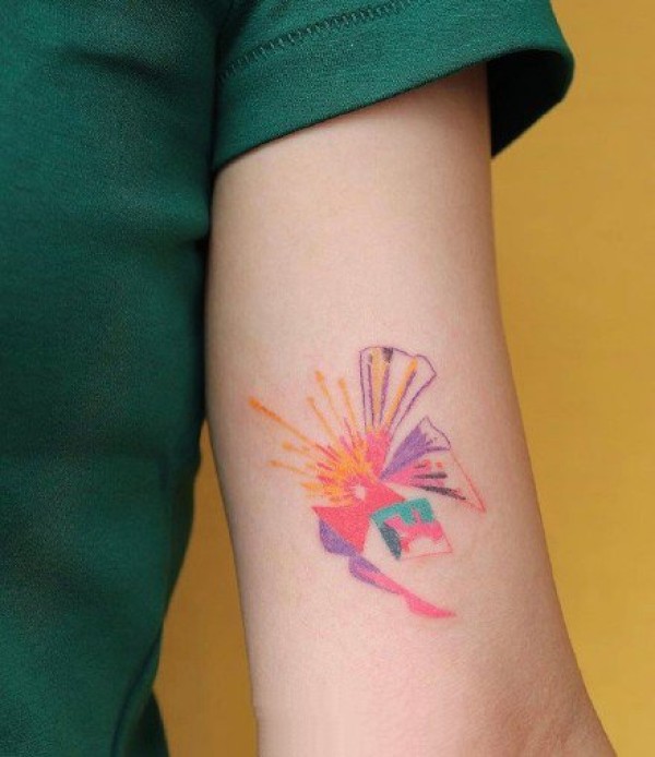 小清新涂鸦纹身:27张简约清新的小彩色涂鸦纹身图案