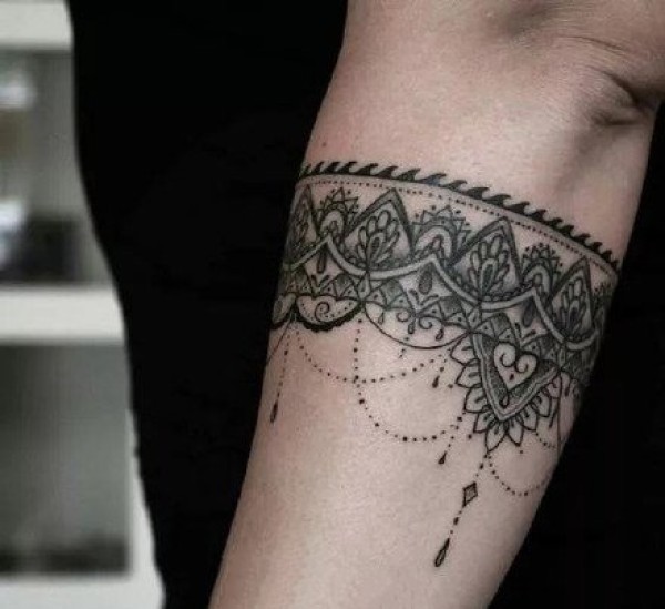蕾丝臂环:给女生增加性感的手蕾丝手环臂环纹身图案