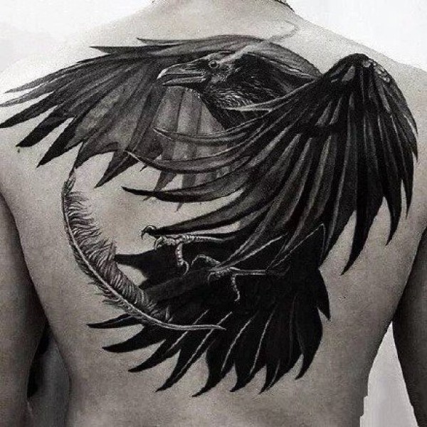 好看的一组大黑色乌鸦纹身作品图案