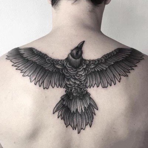 乌鸦主题的9张深黑色乌鸦纹身图案