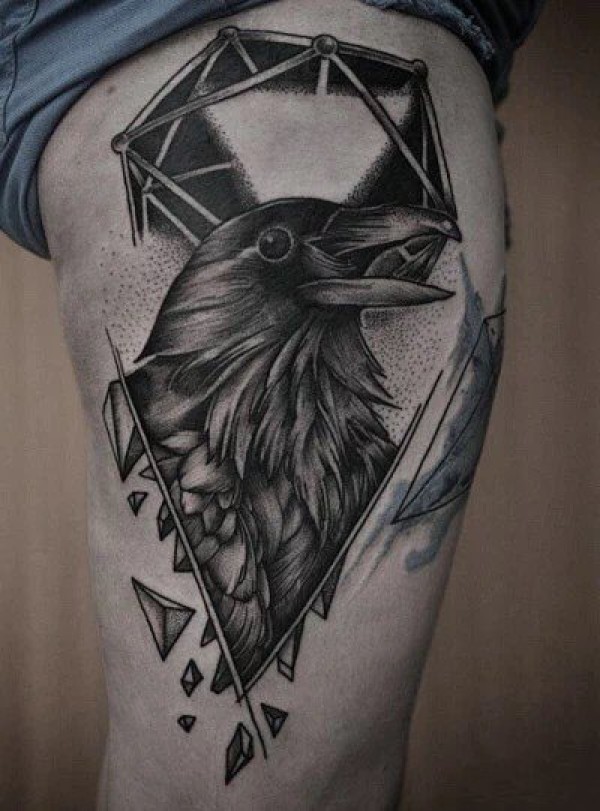 乌鸦主题的9张深黑色乌鸦纹身图案