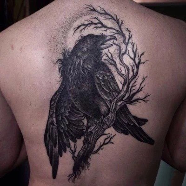乌鸦主题的9张深黑色乌鸦纹身图案