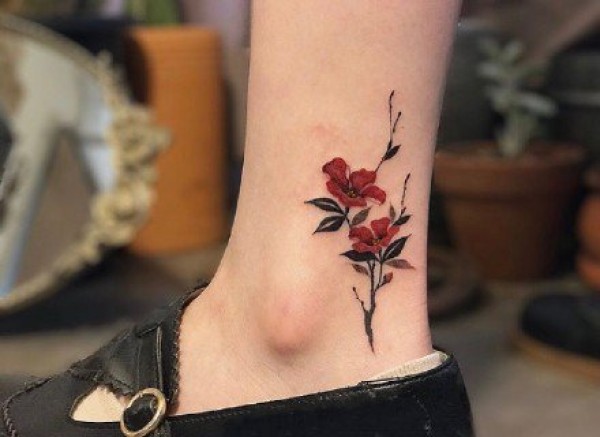 女生脚踝上的小清新花朵纹身图片
