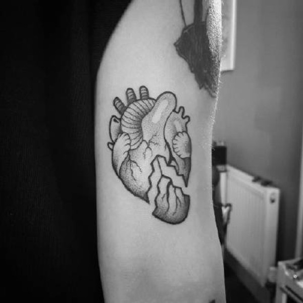 心脏纹身图案 女生手臂上黑灰纹身心脏纹身图案