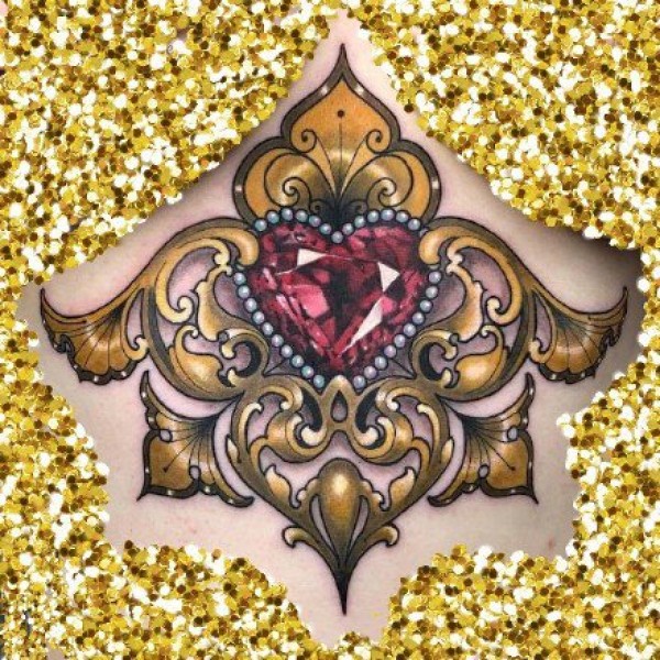 胸部昂贵的钻石工艺品纹身