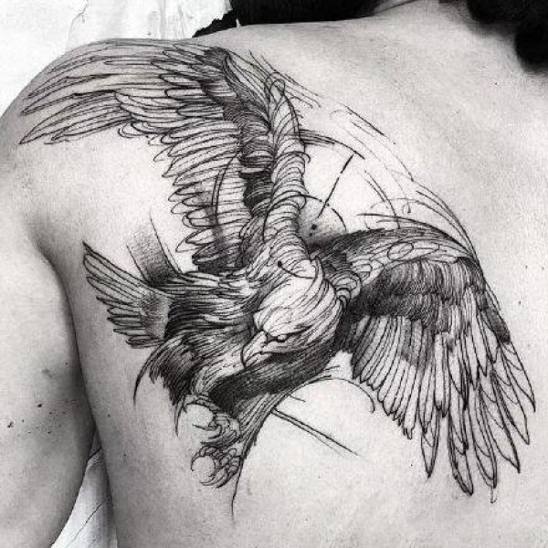 霸气翅膀:适合男性的一组霸气翅膀纹身图案9张