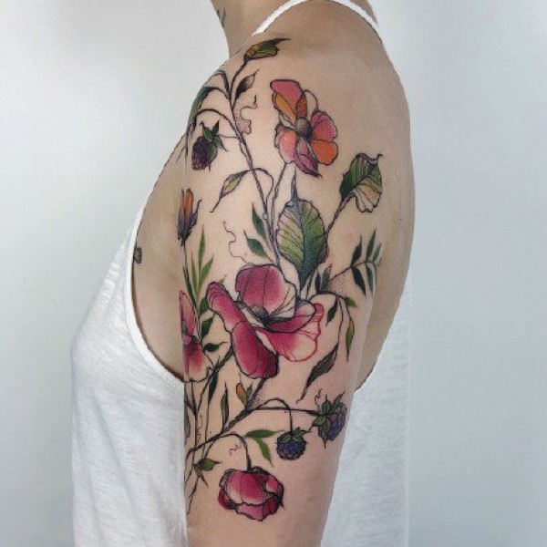 肩花纹身--一组适合肩部的黑灰肩花纹身图案欣赏