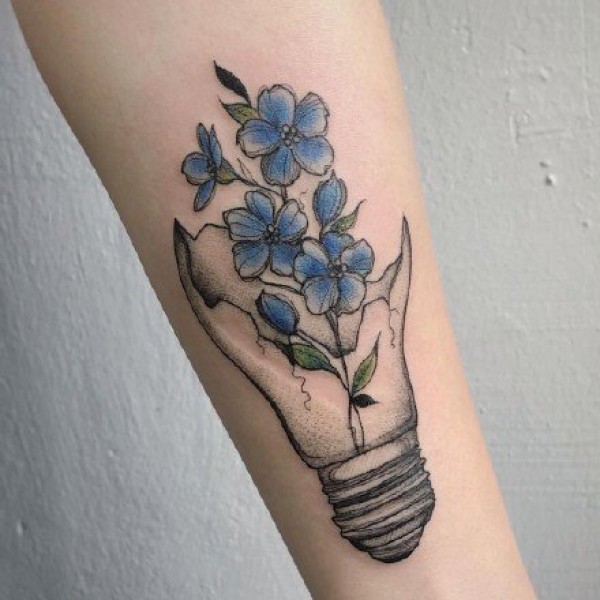 纹在手臂胳膊上的黑灰素花花卉纹身图案欣赏