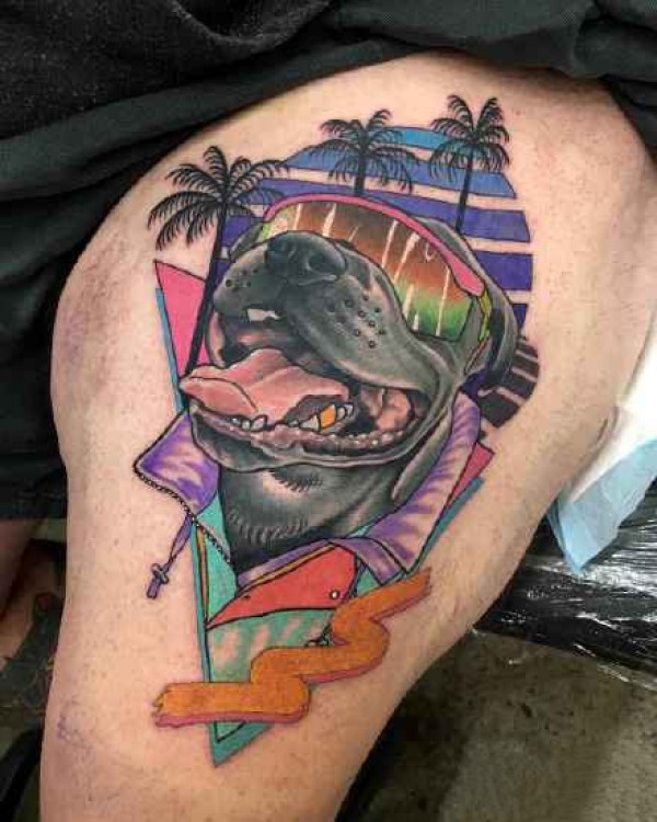 创意搞怪的一组彩色school风格的动物纹身图案