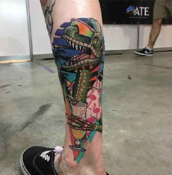 德国恐龙纹身眼镜蛇和卡通鳄鱼纹身水彩动物图案纹身