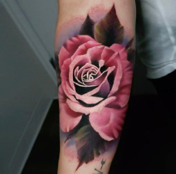 娇艳玫瑰手臂纹身_玫瑰花纹身图案大全_纹身图吧