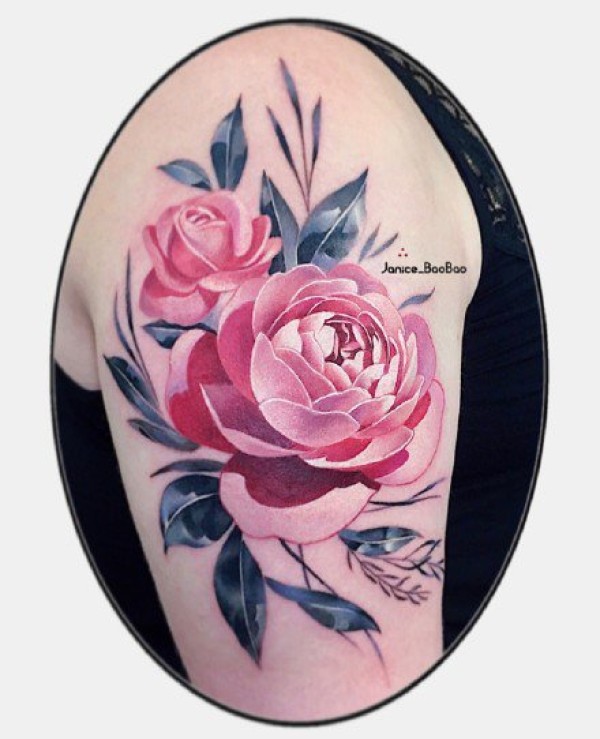 女士很喜欢的漂亮玫瑰花纹身作品图片9张