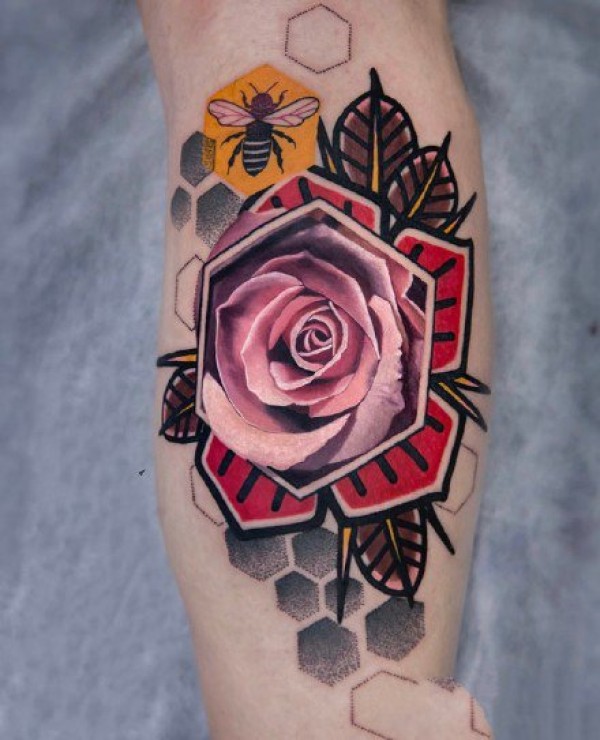 小腿玫瑰花纹身:9张小腿上漂亮的一组玫瑰花纹身图案