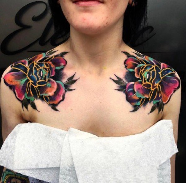 复古骷髅玫瑰肩部纹身_玫瑰花纹身图案大全_纹身图吧