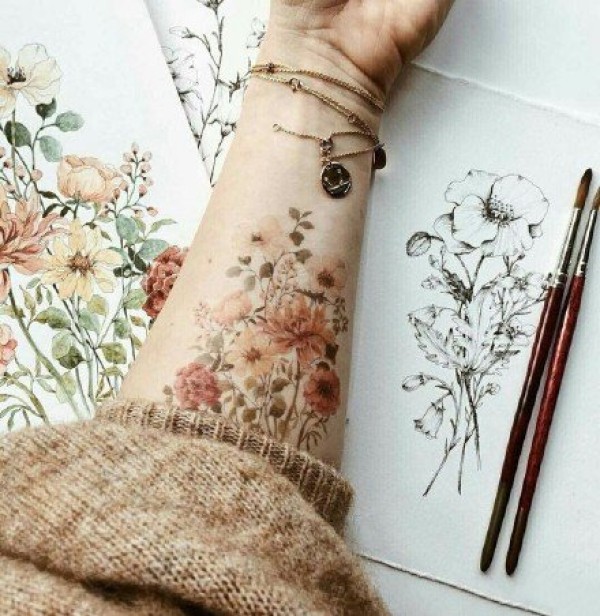 适合小臂和小腿唯美小清新的花朵纹身图案