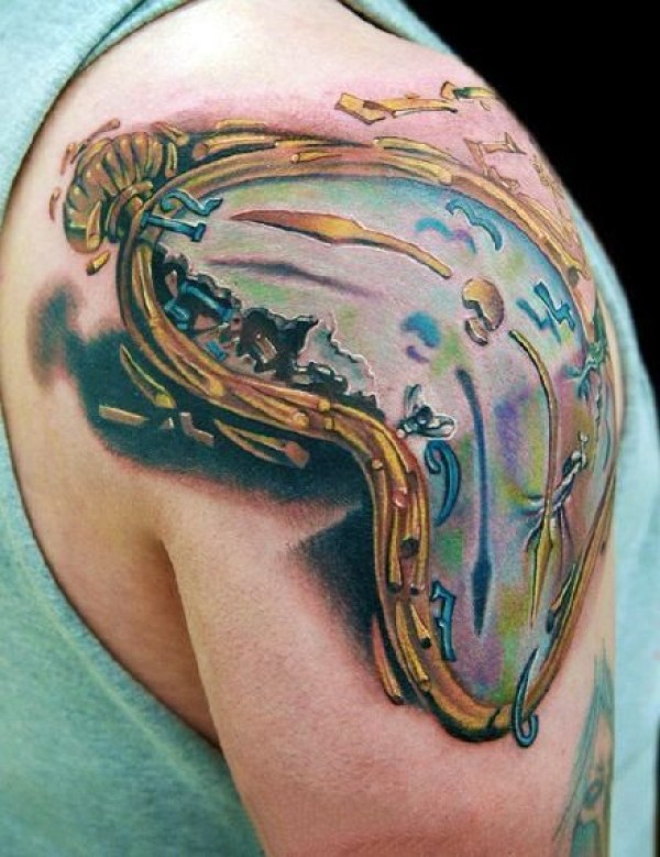 变形钟表纹身:9张创意变形了的钟表纹身图案