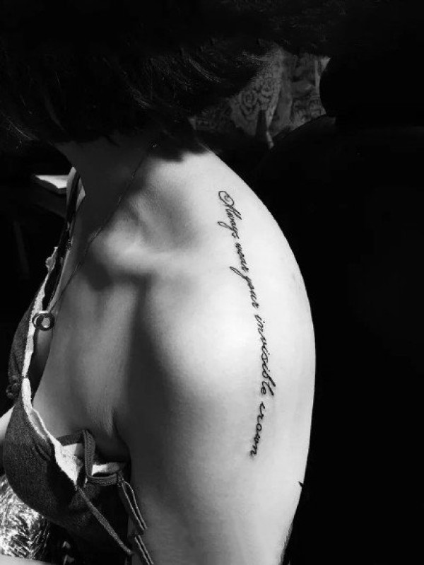 女生肩部上的小清新英文字母纹身图案9张