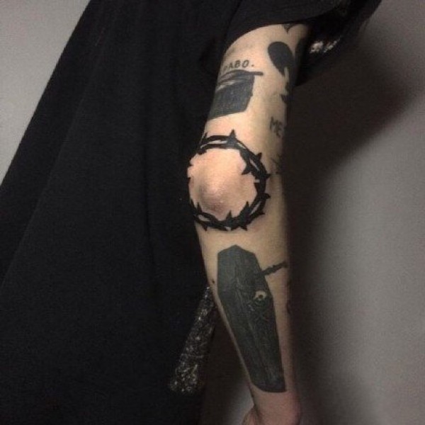 心脏纹身图案 女生手臂上黑灰纹身心脏纹身图案