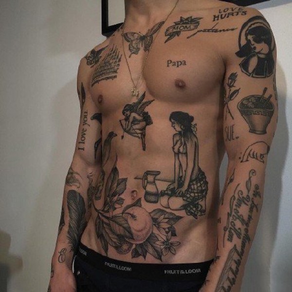 欧美花臂纹身_22张霸气黑灰欧美大黑花臂纹身图案作品图片