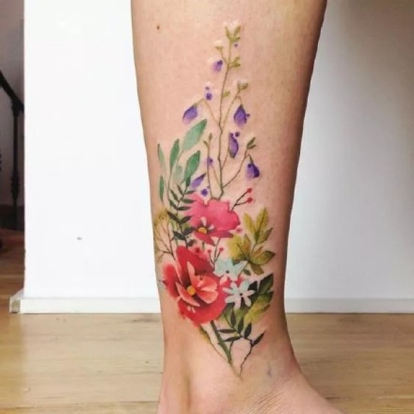 小腿玫瑰花纹身:9张小腿上漂亮的一组玫瑰花纹身图案