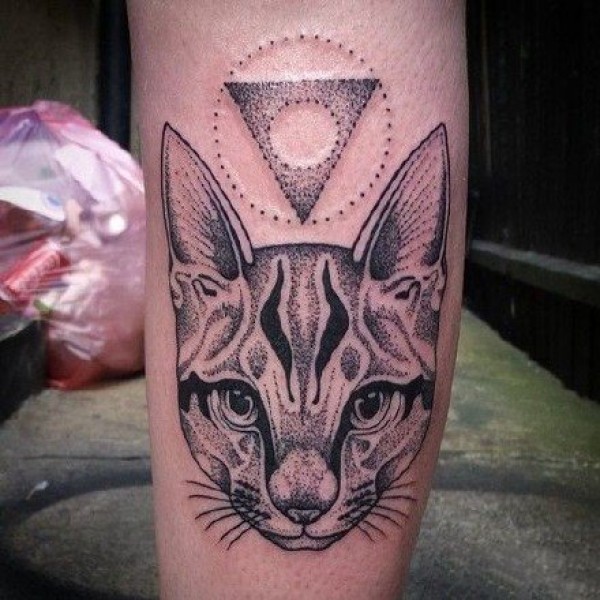 一组黑灰色的几何图形+小猫纹身图案欣赏