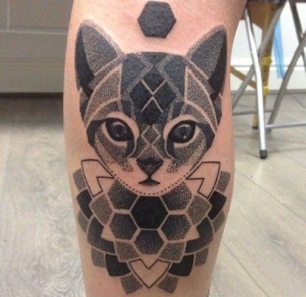 一组黑灰色的几何图形+小猫纹身图案欣赏