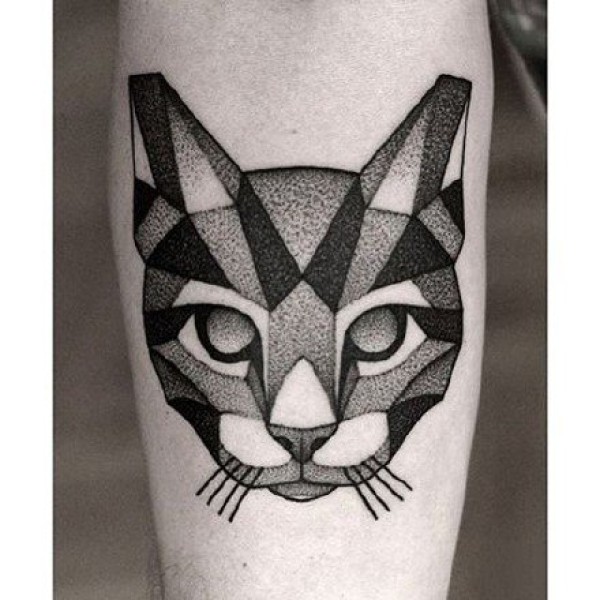 一组黑灰色的几何图形+小猫纹身图案欣赏