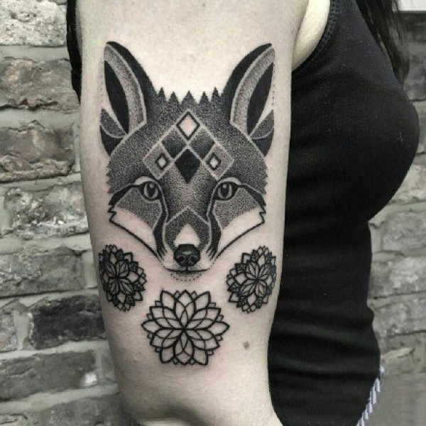 一组黑灰色的几何图形+小猫纹身图案欣赏