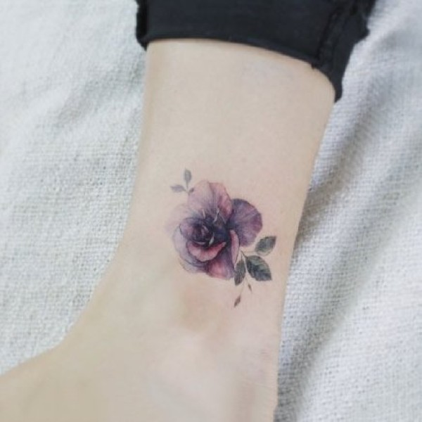 女生脚踝上的小清新花朵纹身图片