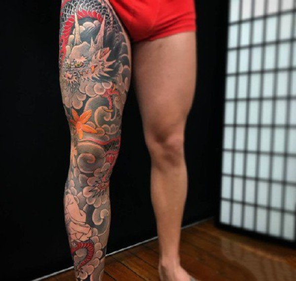 传统花腿纹身--18张传统风格的大花腿纹身图案作品