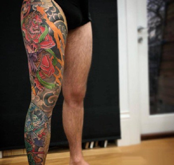 传统花腿纹身--18张传统风格的大花腿纹身图案作品