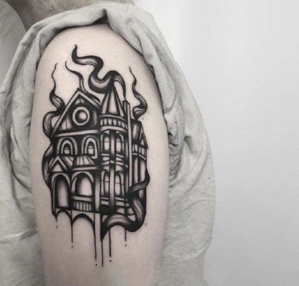 心脏纹身图案 女生手臂上黑灰纹身心脏纹身图案