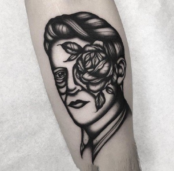 心脏纹身图案 女生手臂上黑灰纹身心脏纹身图案