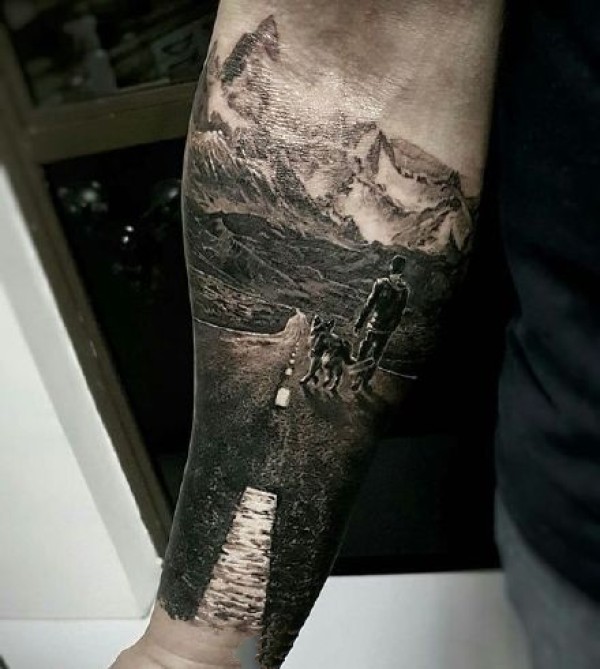 25款男性黑色手臂线条纹身点刺技巧半甲纹身图案