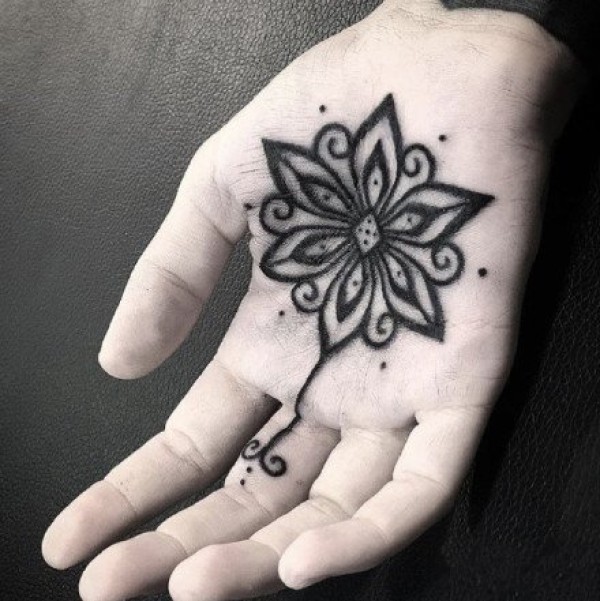 手掌纹身--一组好看的纹在手掌心里的纹身图案作品