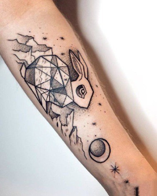 小兔子纹身:黑灰色的9张小兔子纹身作品9张