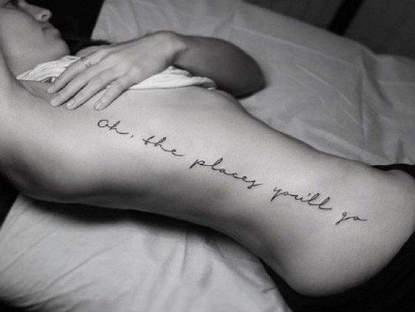 女生后腰纹身黑白灰风格抽象线条纹身图案