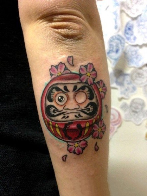 彩绘樱花达摩蛋纹身图案