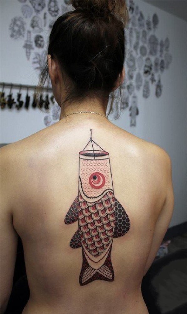 经典超酷的一款满背鲤鱼跃龙门纹身图案_鲤鱼纹身图案大全_纹身图吧