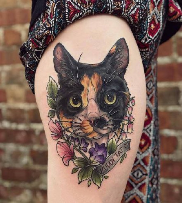 可爱的newschool风格的猫猫狗狗动物纹身图案