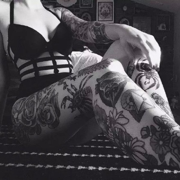 花腿作品:性感的一组女性花腿纹身图片欣赏