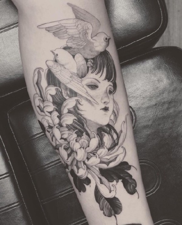 手臂艺伎:9张纹在胳膊上的花旦艺伎纹身图案