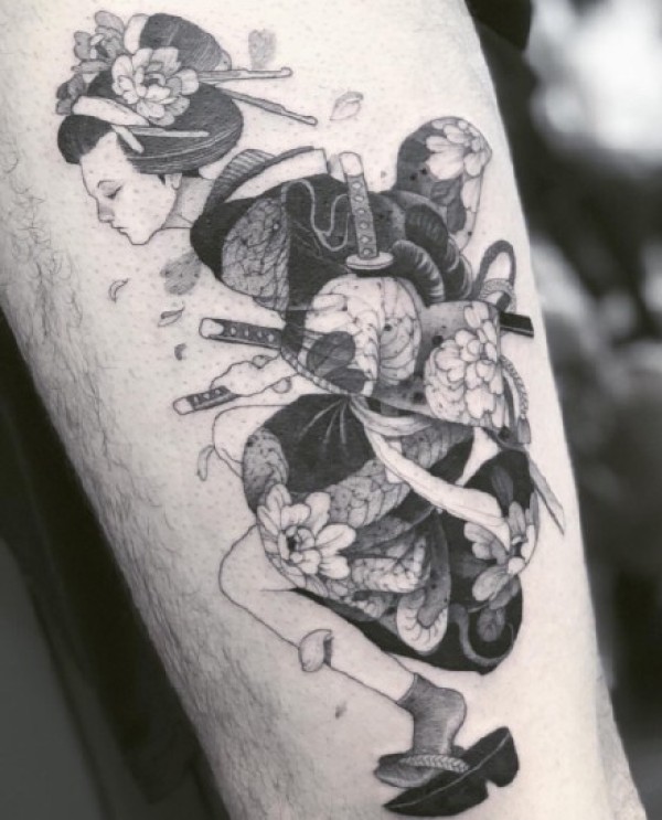 艺伎纹身--一组独特创意的日式艺妓纹身图案作品