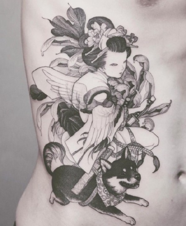 艺伎纹身--一组独特创意的日式艺妓纹身图案作品