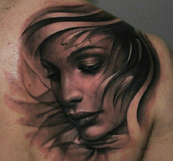 欧美写实风格的黑灰女郎人像纹身作品9张