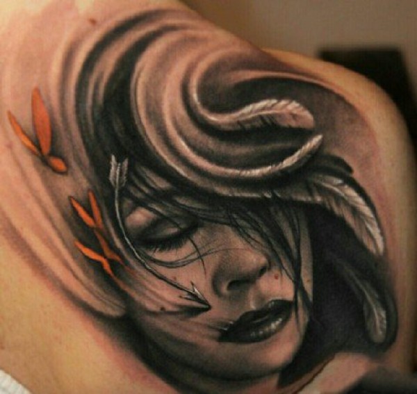 欧美写实风格的黑灰女郎人像纹身作品9张