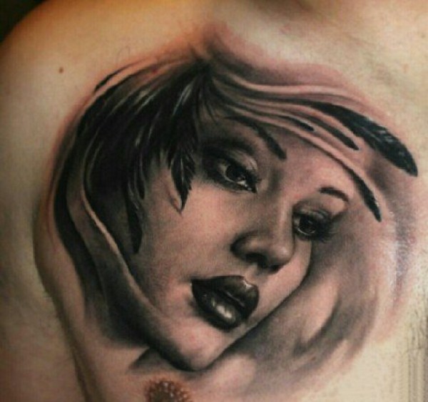 欧美写实风格的黑灰女郎人像纹身作品9张