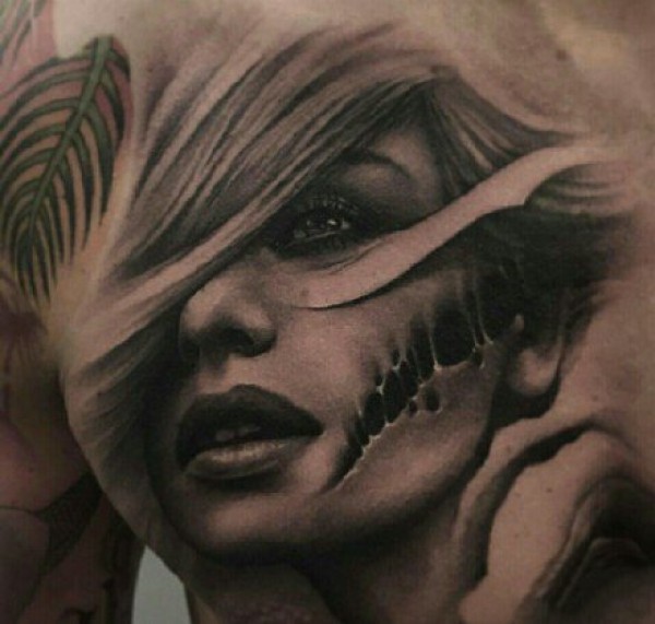 欧美写实风格的黑灰女郎人像纹身作品9张
