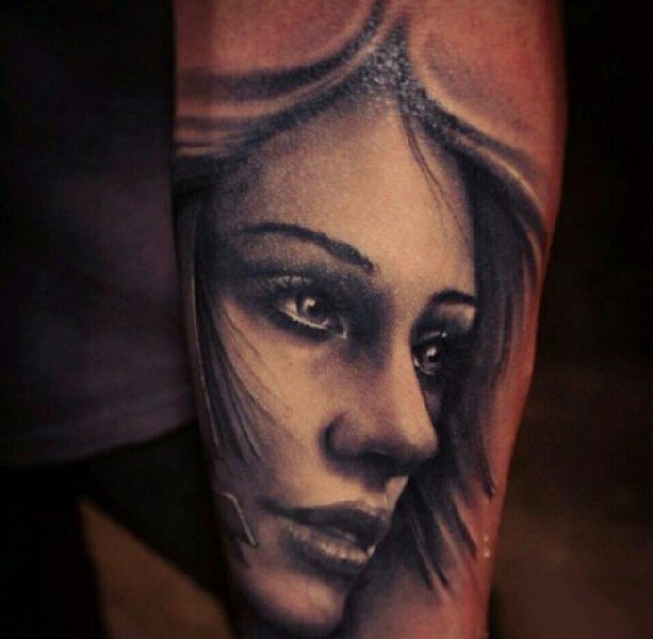 欧美写实风格的女性人物肖像纹身作品图案
